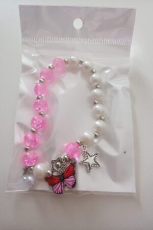 Pulsera roja y blanca con detalle de mariposa y estrella