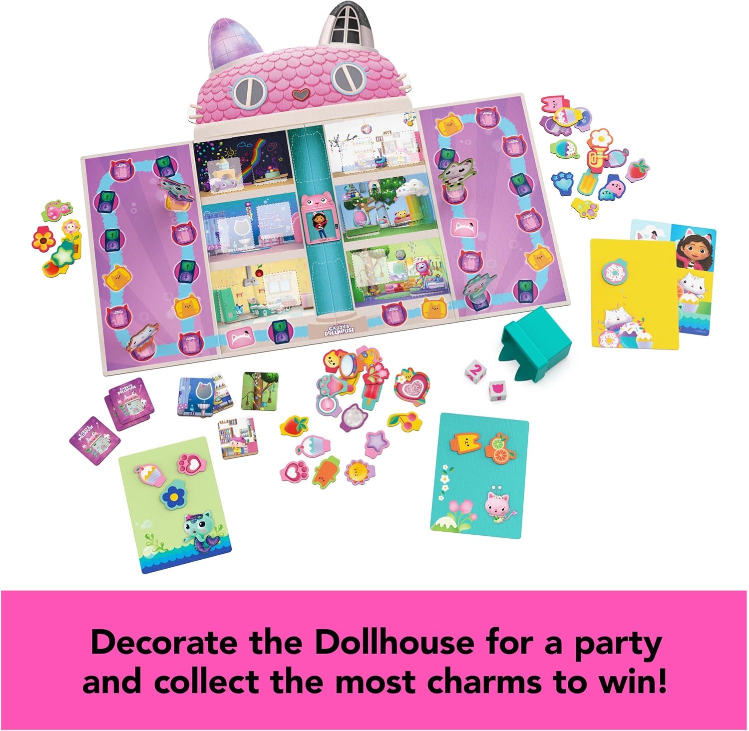 - Basado en el programa de Netflix: si tus hijos están obsesionados con los juguetes de Gabby’s Dollhouse, ¡entonces este juego para niños es imprescindible! Este divertido juego para niños también es perfecto para suministros de fiesta de Gabby’s Dollhouse.